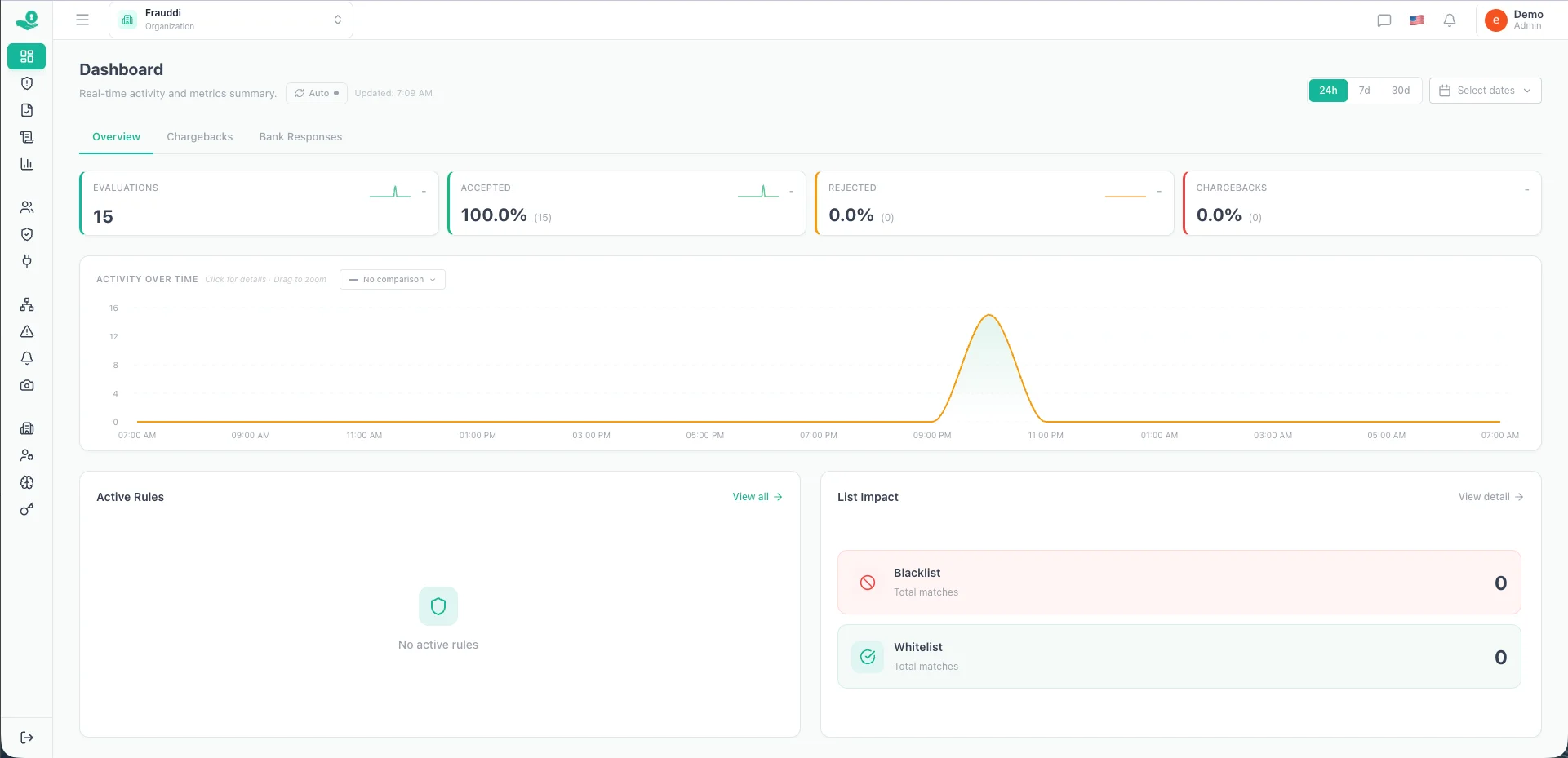 Assessments, approvals, declines, and chargebacks. Temporal activity, active rules, and list impact — all in one view.